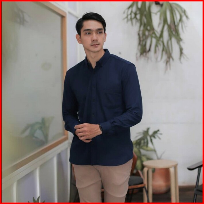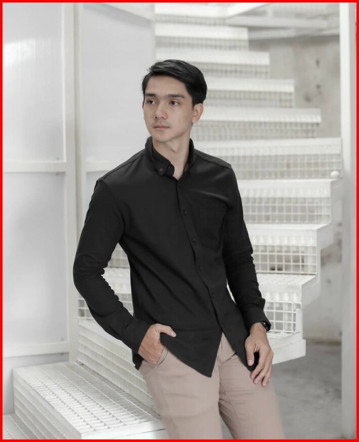Kemeja Polos Hitam Cowok Panjang Kerja Kantor Slimfit Baju Pria