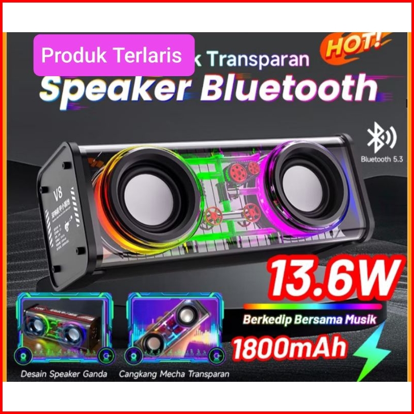 Speaker Bluetooth Cyber Bass Suara Mantab V8 Transparan