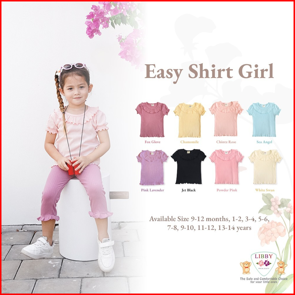 Libby Atasan Anak Perempuan Ruffle Kaos Polos Easy Shirt Girl Usia 9 Bulan - 14 Tahun 1pcs