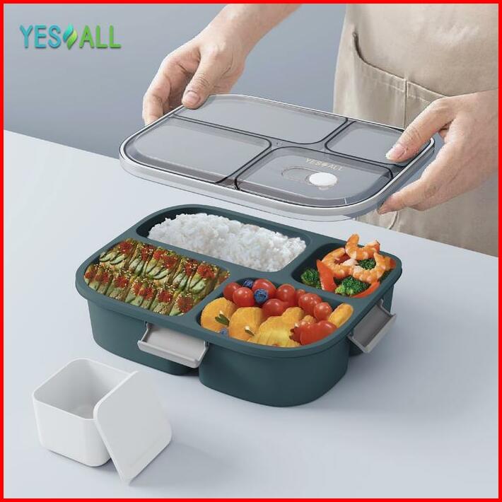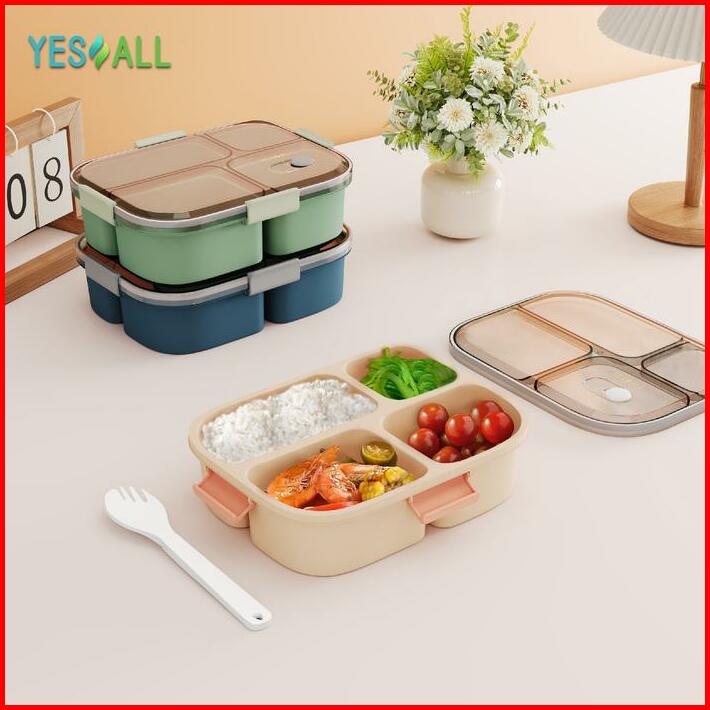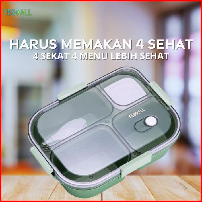Yesall Lunch Box Kotak Makan Tempat Bekal Wadah Makan Bontot Bento 4 Grid Kitchenware Bekal Estetik Korea Sehat Penyimpa