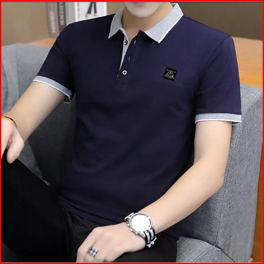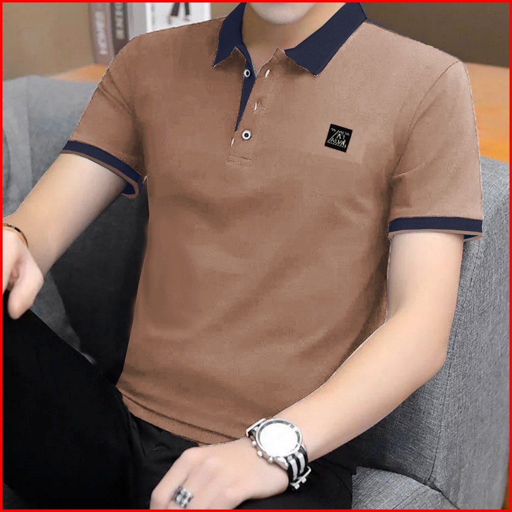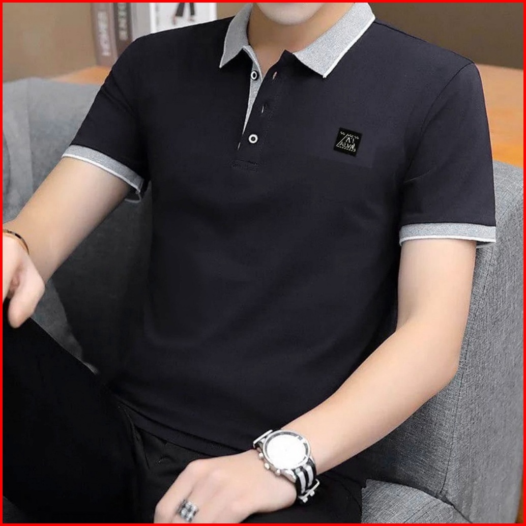 Kaos Kerah Pria Distro Kombinasi Mangset Lengan Pendek