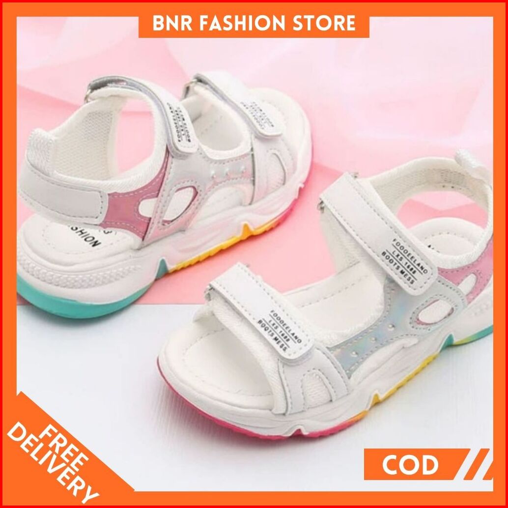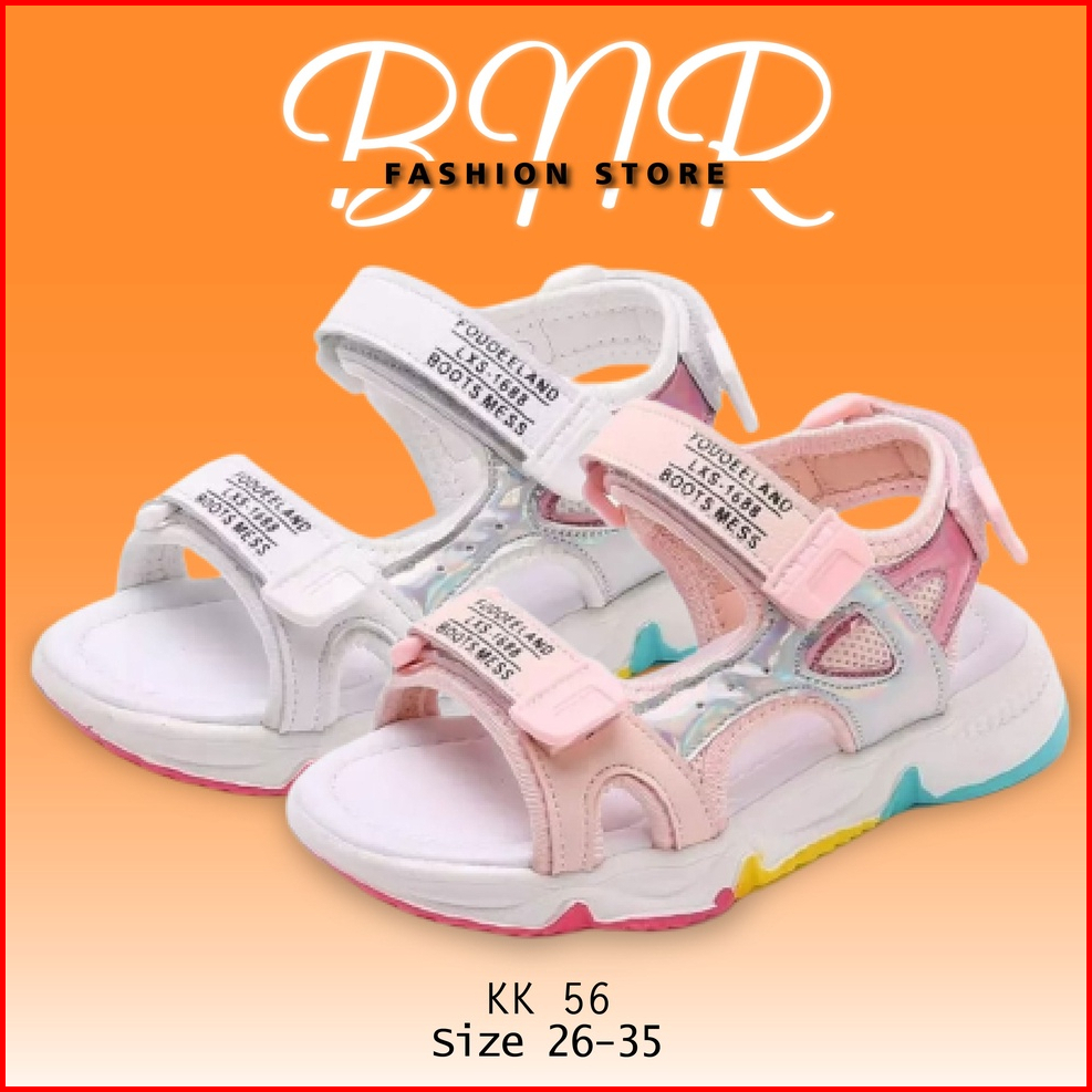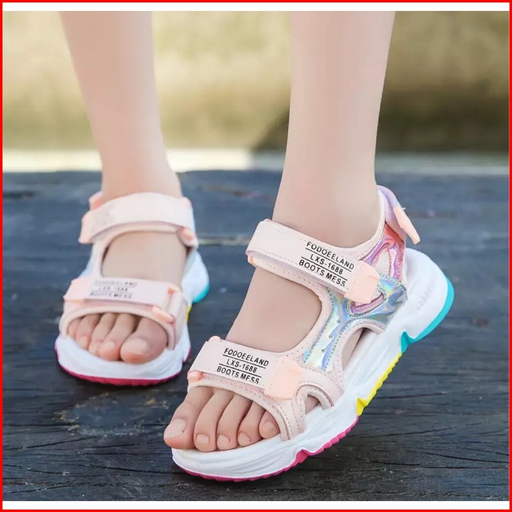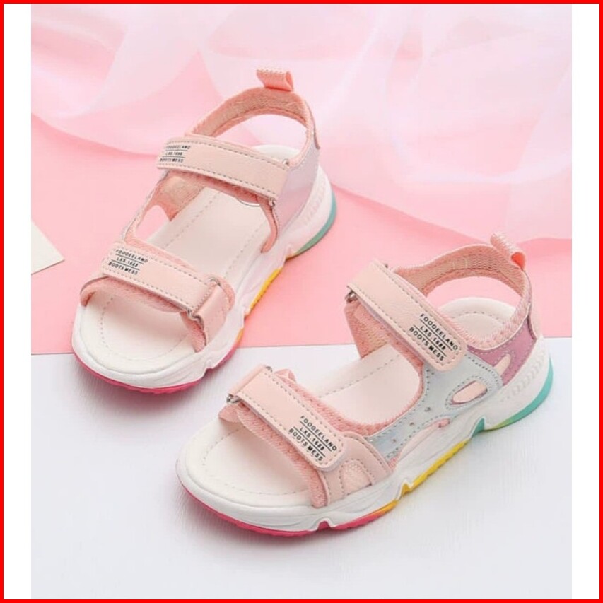 Sendal Gunung Anak Cewe Cantik Sol Pelangi Bahan Kombinasi Hologram Velcro Kk 56
