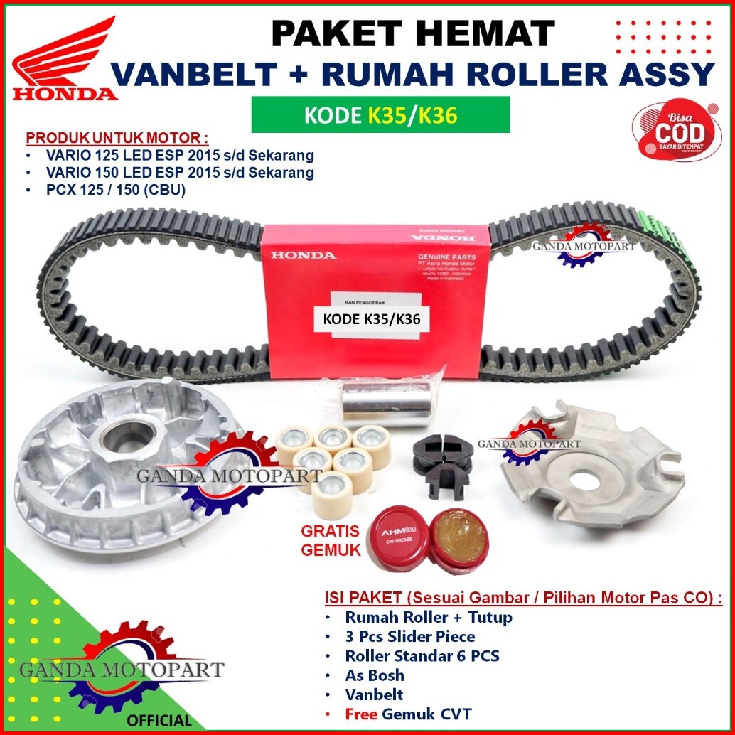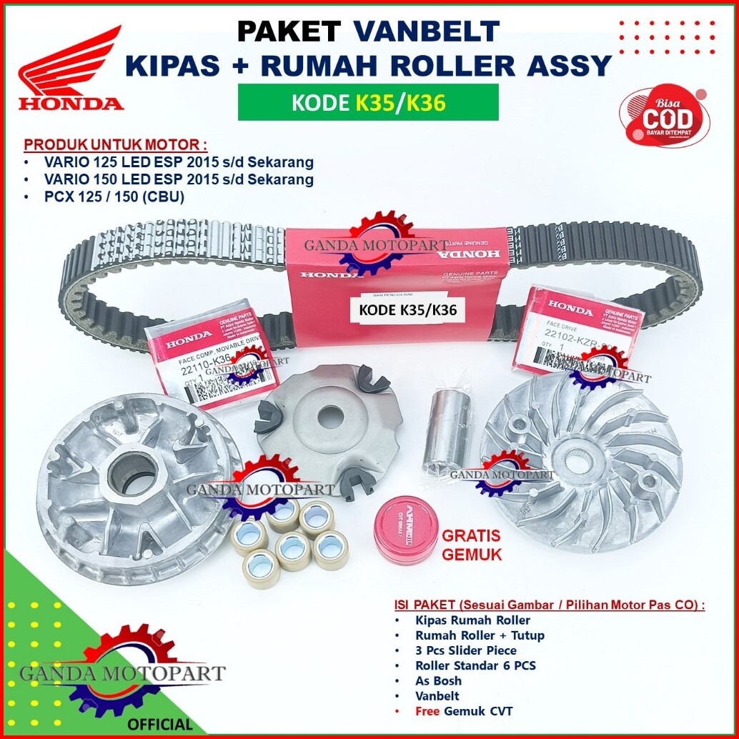 Paket Vanbelt Kipas Rumah Roller Set Vario 125 Fi Tekno Kzr Vario 125 150 Led Esp K35 K36