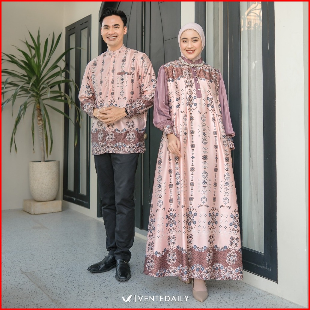 Ventedaily - Shanaya Couple Sarimbit Lebaran 2025 Gamis Kemeja Silk Baju Couple Kondangan Mewah