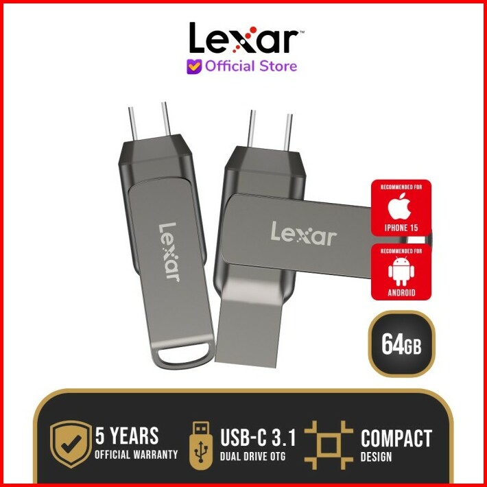Lexar Flashdisk Jumpdrive Dualdrive D400 Otg 64gb Usb-c 3.1