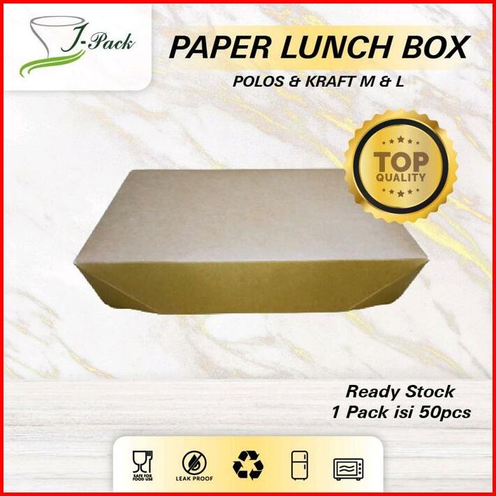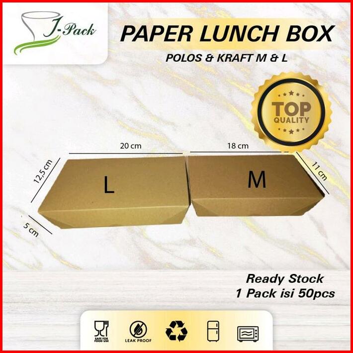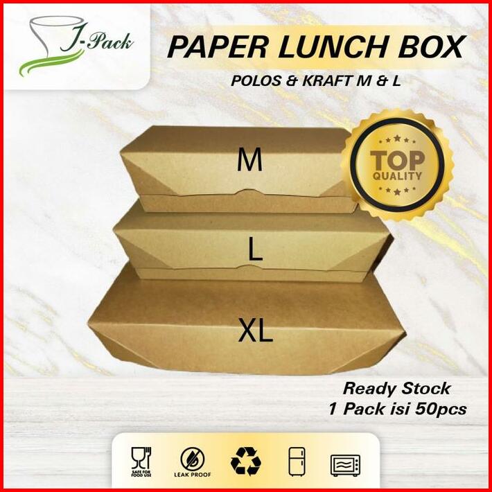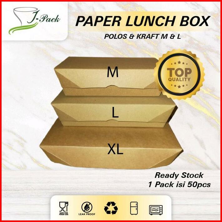Paper Lunch Box Kraft L Kotak Makan Kertas Cokelat Size L Per-50pcs