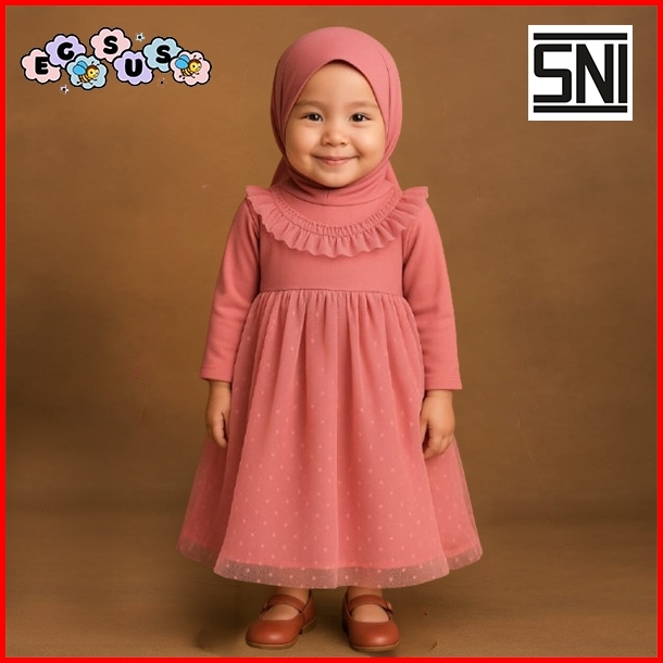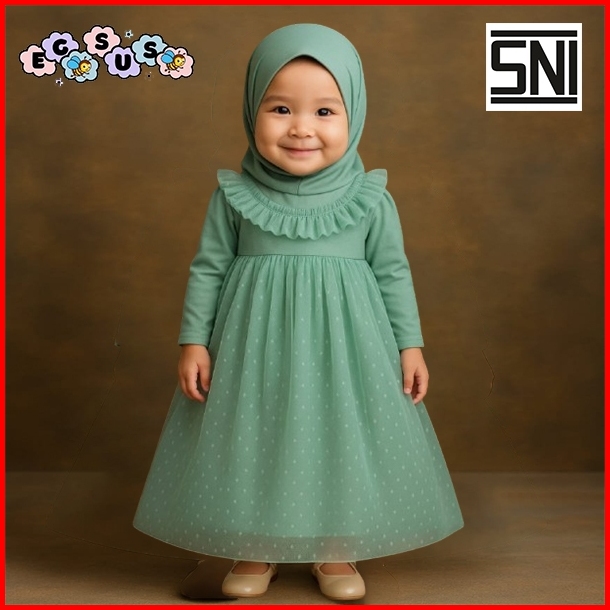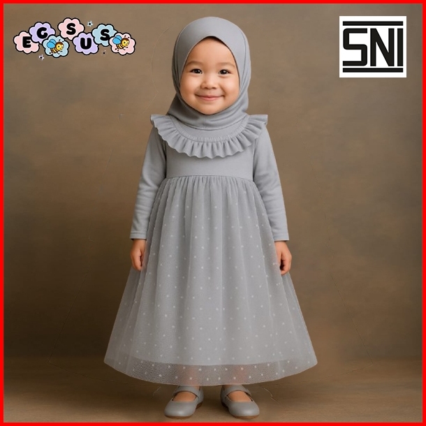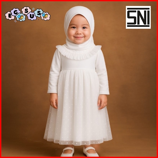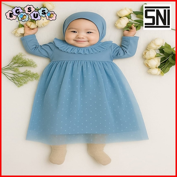 Egsus Gamis Hijab Bayi Renda Tutu Tile Doti 0-4 Tahun Pakaian Muslim Balita Perempuan Polos Navy