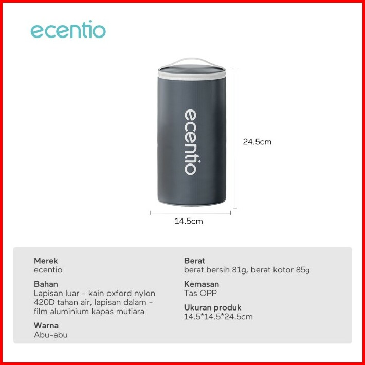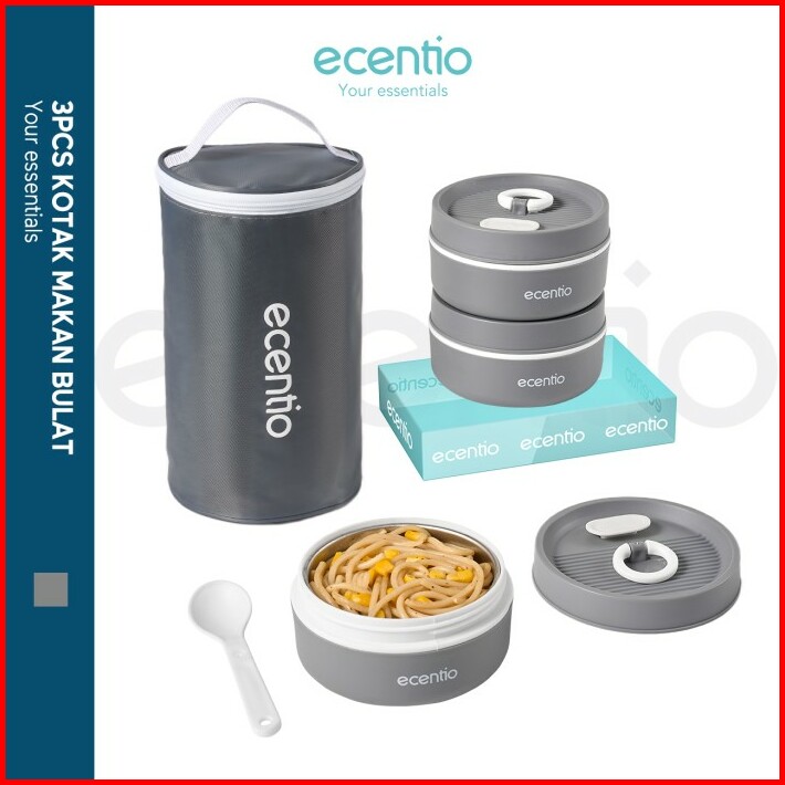 Ecentio Lunch Box Tas Set 3pcs Kotak Makan Anti Tumpah 304 Stainless Steel Tas Bekal Dan Free Sumpit