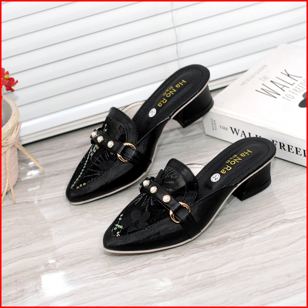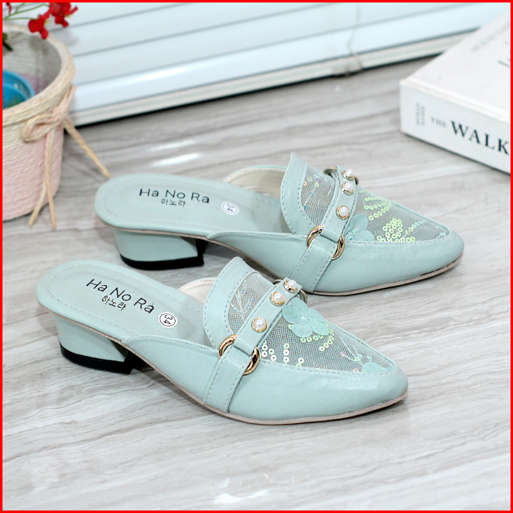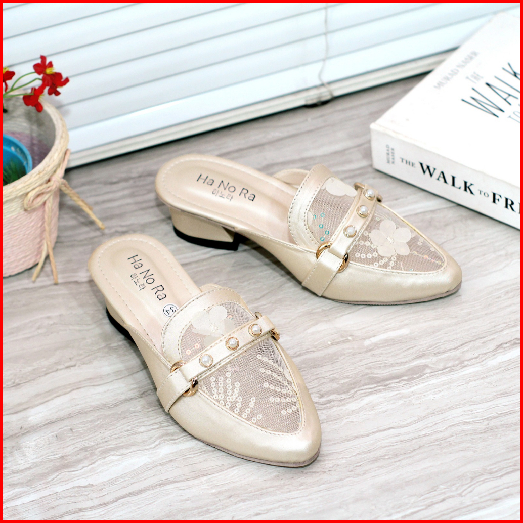 Sandal Pesta Anak Perempuan Hak Tahu 3 Cm Motif Mutiara Slip On Chunky Heels Selop Cewe Tahun Wtc