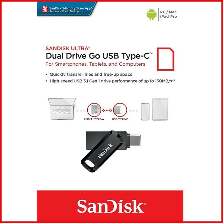 Flashdisk Sandisk Otg Type C 32gb 64gb 128gb Sandisk Dual Drive Sdddc3