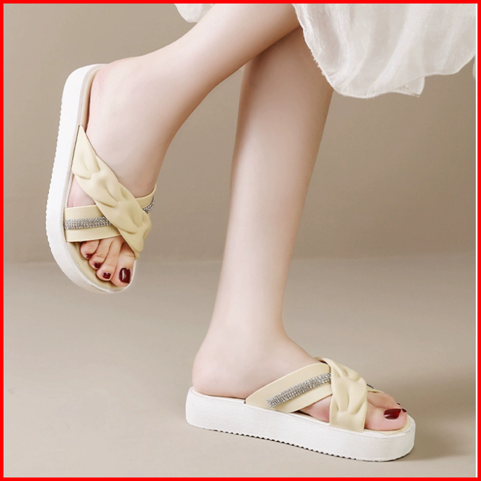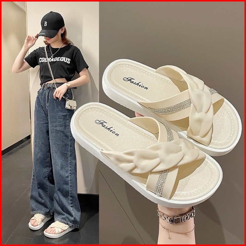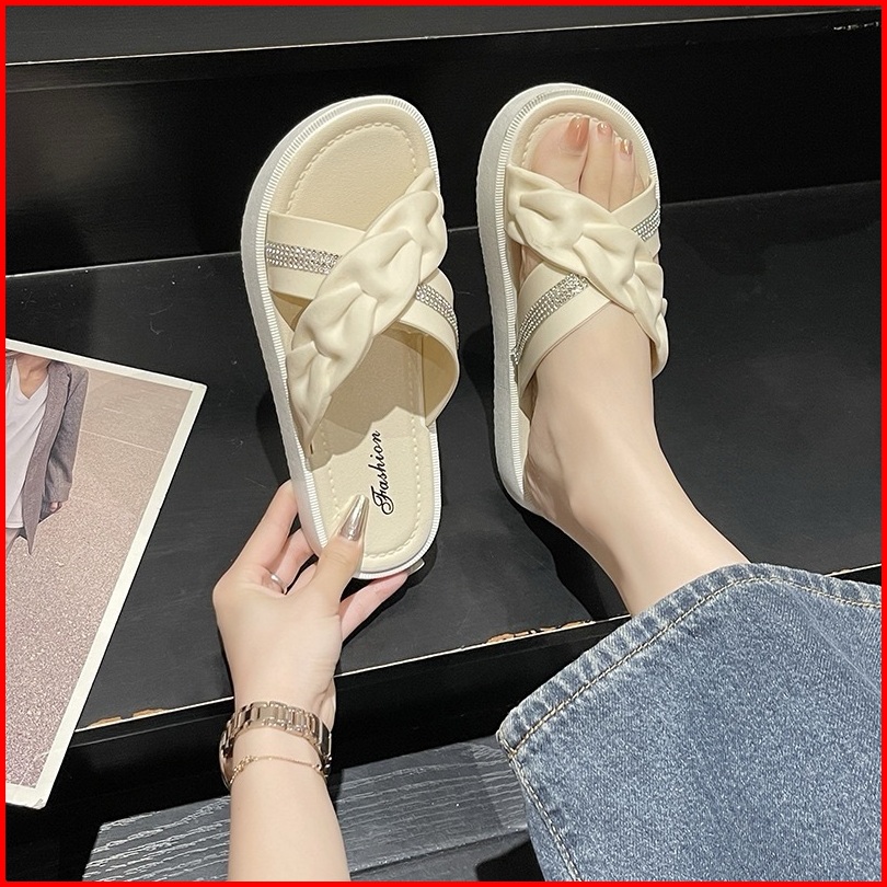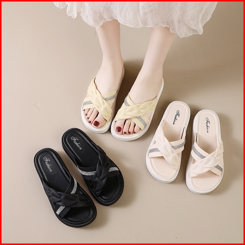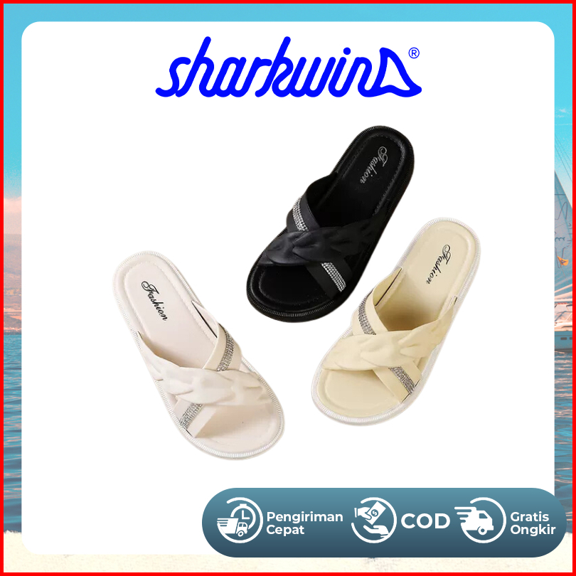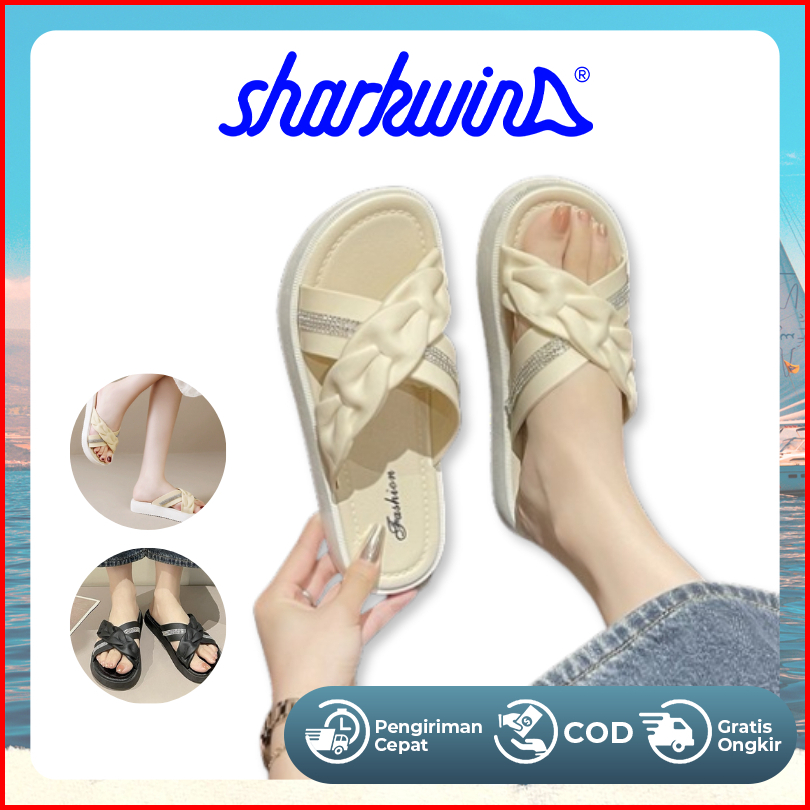 Sharkwin Sendal Wanita Flat Korean Tali Silang Anti Slip Flat Shoes Sandal Cewek Nyaman Empuk Sf30905