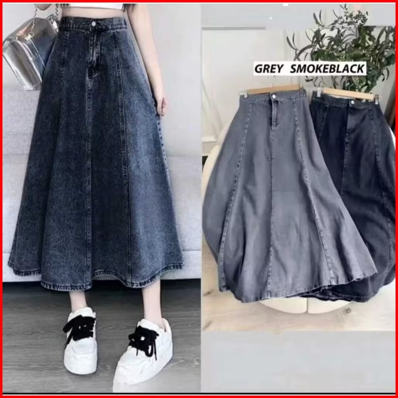 Jisso Rok Jeans Mayung Premium Wanita A-line 7 8 Model Payung Pinggang Karet Rok Wanita Highwaist Skirt Denim Terbaru