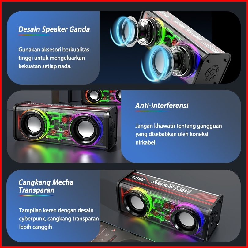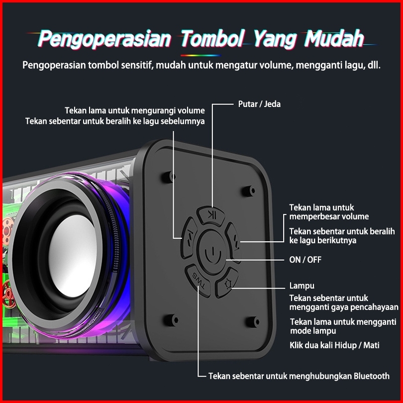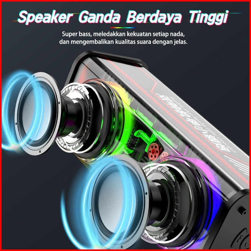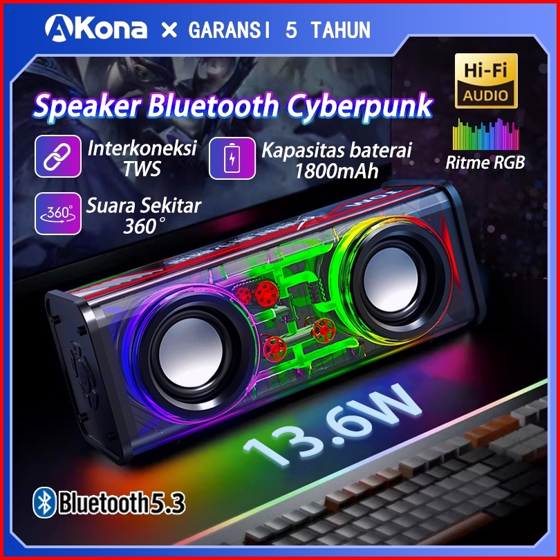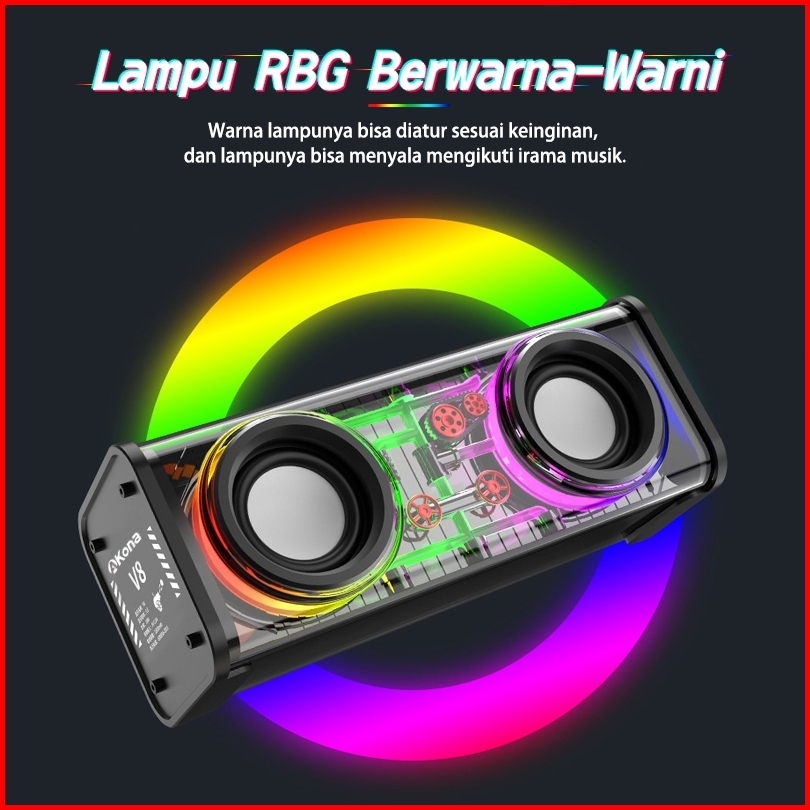 Akona Speaker Bluetooth Cyberpunk 13.6w Daya Tinggi Speaker Bass Bluetooth Rgb Led Light Akrilik Transparan V8 Spiker Bl