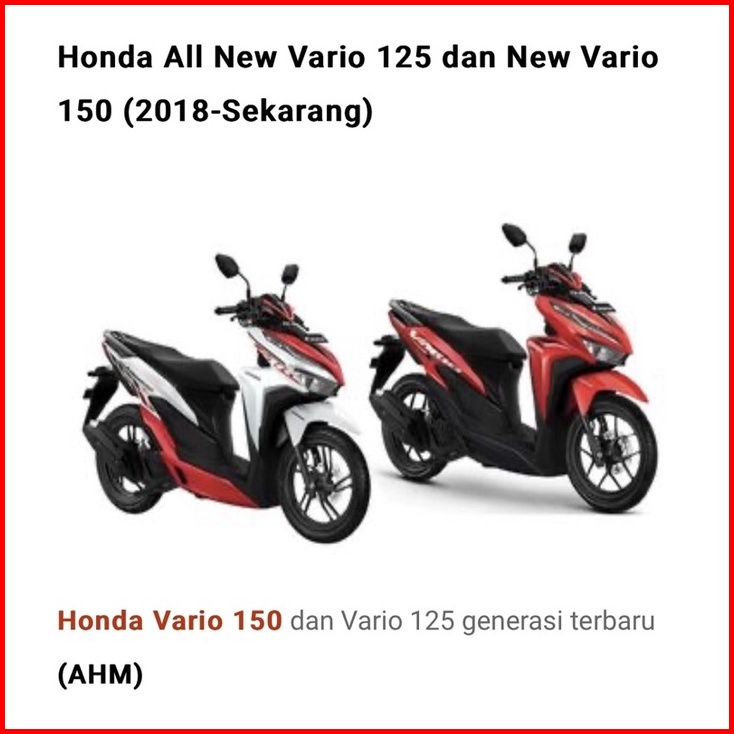 Vario 160 Merah, Merah 2015 sd 2018, Merah 2018 sd 2025, Vario 125-150 Merah, Vario OLD 125 Merah, Vario 160 Hitam, Hitam 2015 sd 2018, Hitam 2018 sd 2025, Vario 125-150 Hitam, Vario OLD 125 Hitam, Vario 160 Abu, Abu 2015 sd 2018, Abu 2018 sd 2025, Vario 125-150 Abu, Vario OLD 125 Abu, Vario 160 Putih, Putih 2015 sd 2018, Putih 2018 sd 2025, Vario 125-150 Putih, Vario OLD 125 Putih, Vario Biru 2015-2018, Vario Biru 2018-2025, Vario 125-150 Biru, Vario OLD 125 Biru, Vario 160 Bluematte, VBM 2018 - 2025, VBM 2015 - 2018, Vario Gold 2015-2018, Vario Gold 2018-2025, VarioKuning2015-2018, VarioKuning2018-2025, Vario 125-150 Kuning, VarioOrange2015-2018, VarioOrange2018-2025, Vario 125-150 Hijau, Vario 125-150 Pink