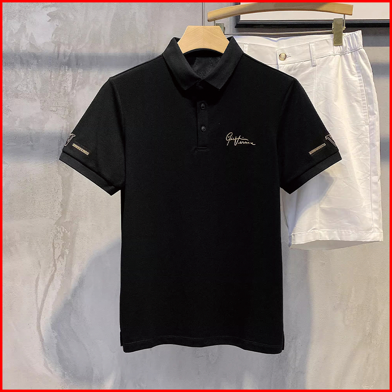 Polo Shirt Pria Hitam Slimfit Stretch Dewasa Cowok Korean Style Nygman Kemeja Kerah Stand Bordir Premium Kaos
