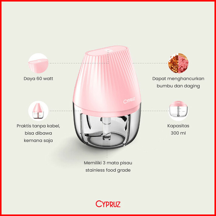 Cypruz Cr-0087 Mini Chopper Portable Usb 300 Ml Penggiling Bumbu