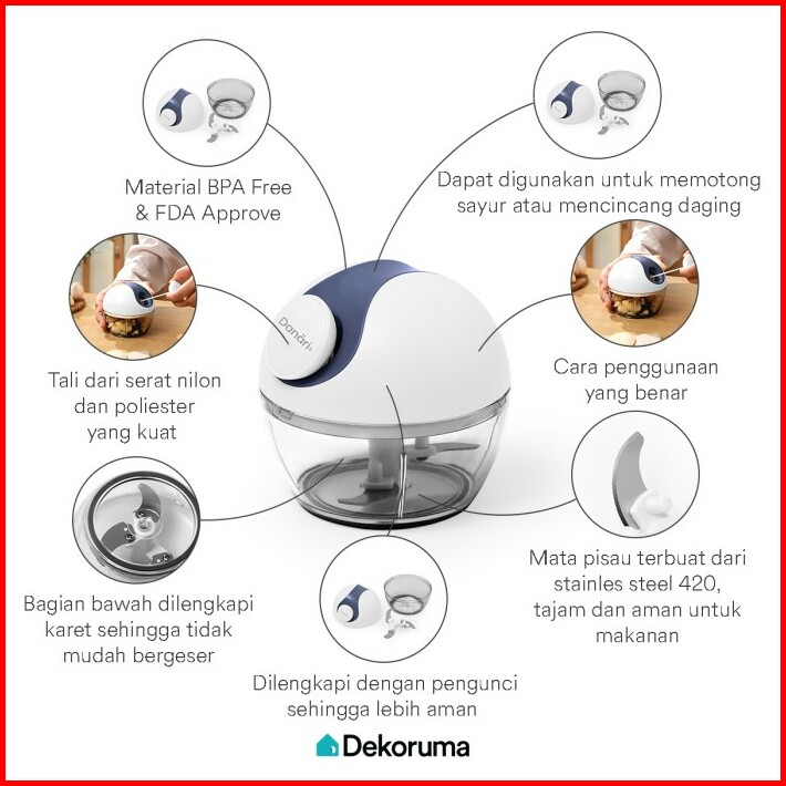 Dekoruma Kiba Pull Mini Chopper Blender Gilingan Bumbu Mini 180ml