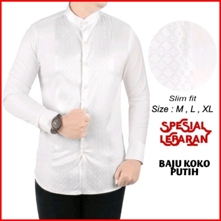 Baju Koko Pria Slim Fit Kemeja Koko Putih Kp12