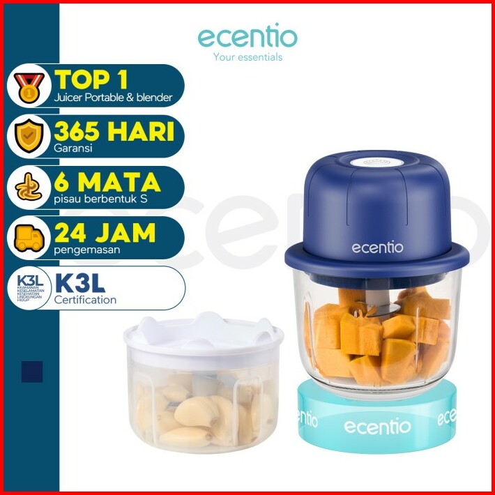 Ecentio Kaca Mini Chopper Blender Portable 6 Pisau 3 Pisau 350ml 250ml Bumbu Kapsul Alat 304 Stainless Steel Penggiling