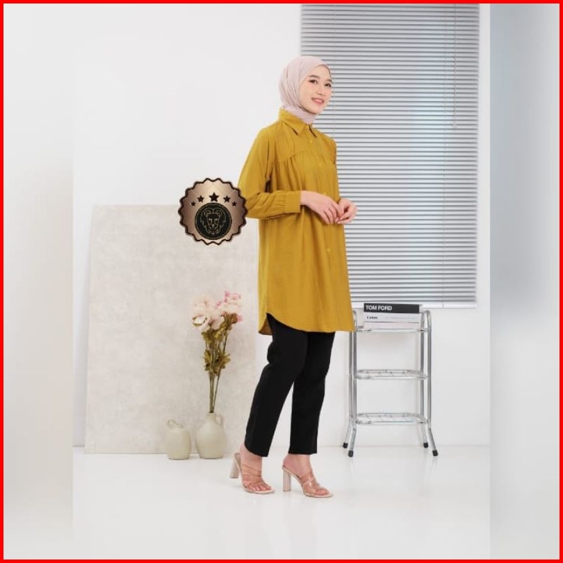 Atasan Wanita Tunik Terbaru Zella Tunik Polos Linen Kancing Depan Belakang Kemeja Wanita Polos Tunik Polilinen