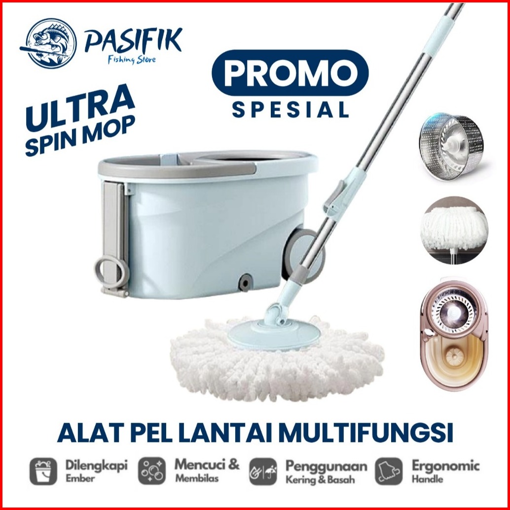 Hot Promo Alat Pel Lantai Alat Pembersih Lantai Kain Fiber Dengan Ember Spin Mop Membilas Mencuci Mengepel Lantai Mudah