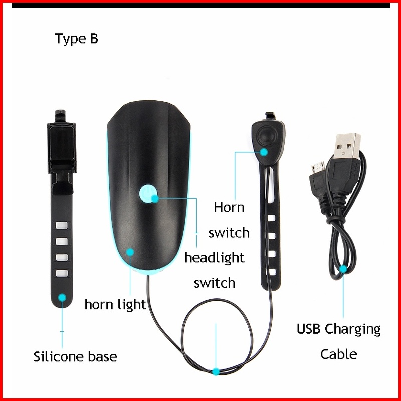 Lampu Depan Sepeda Led Plus Klakson Usb Cas Rechargeable Sepeda - Waterproof