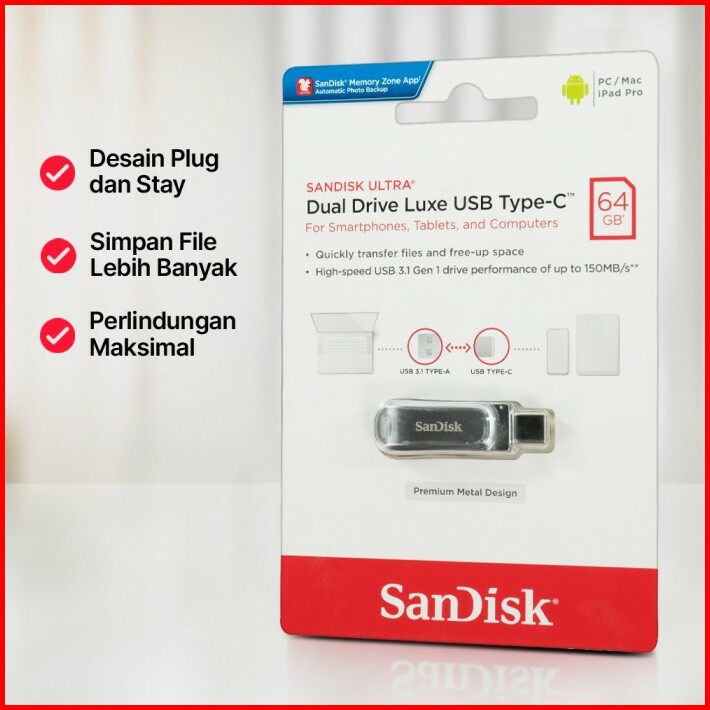 Flashdisk Sandisk Ultra Dual Drive Luxe Usb Type C 3.1 3.2 Gen 1 Gen 2 64gb 128gb 256gb 512gb 1tb Sdddc4