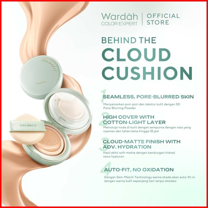 New Wardah Colorfit 5d Blur Cloud Cushion Matte Finish Tahan Lama Hingga 18 Jam Dengan Spf 50 Pa Nano-hyaluron Dan Cica