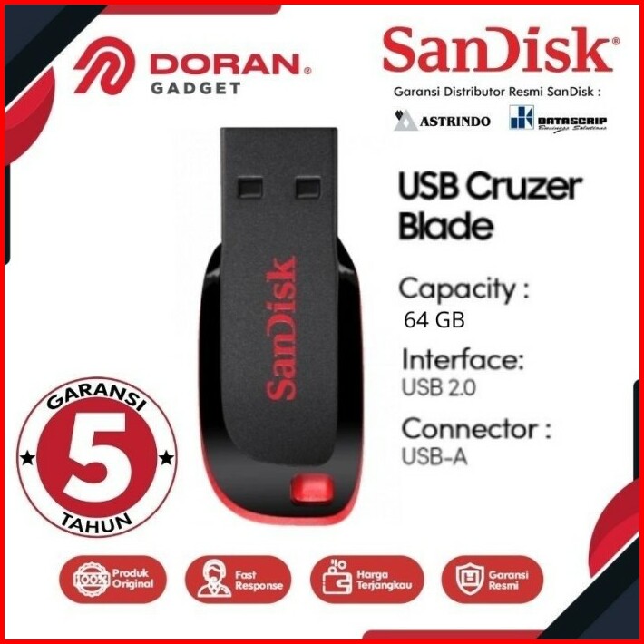 Sandisk Flashdisk Cruzer Blade 64gb Usb Fd Cz50 64 Gb Flash Disk