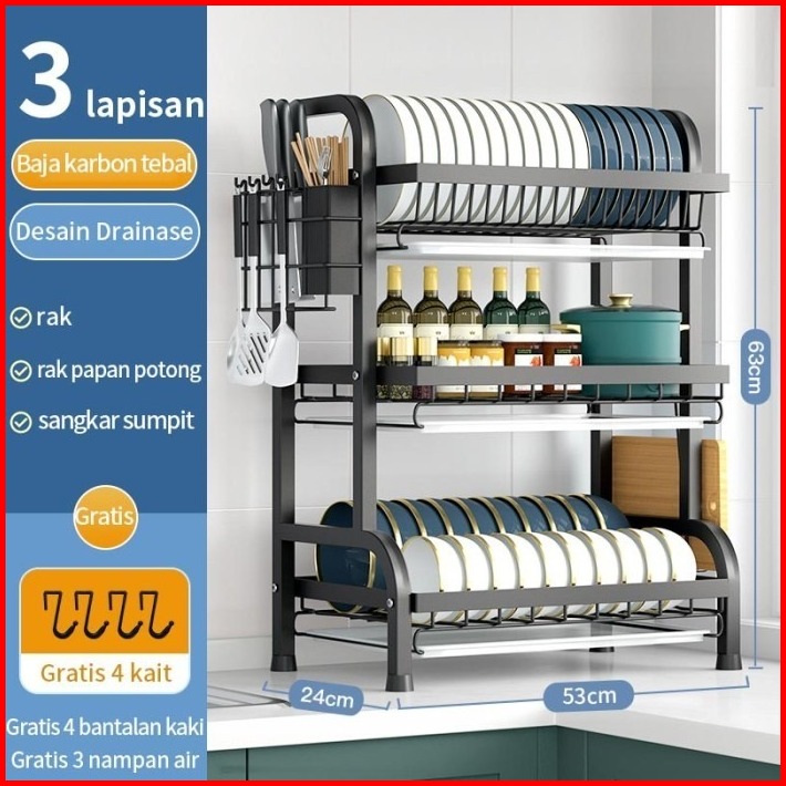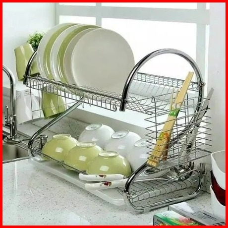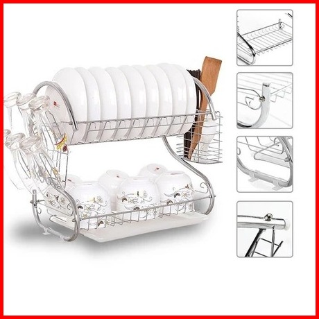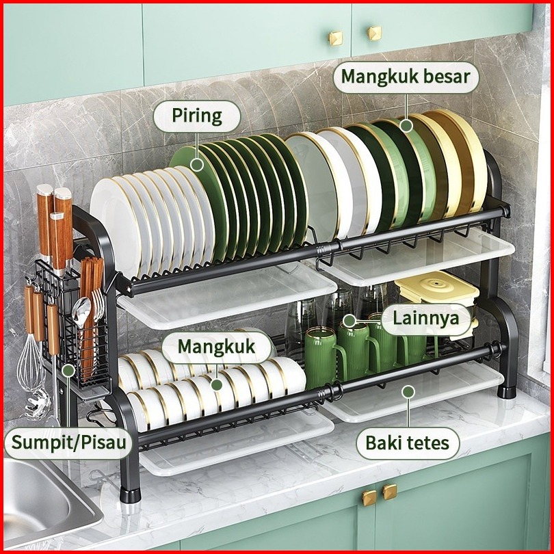 Rak Piring Dapur Stainless Steel Penyimpanan Rak Pengering Piring 2-3 Susun Rak Mangkuk Piring
