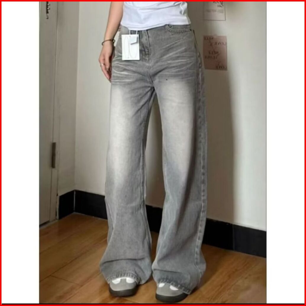 Ozy Store - Biru Retro Highwaist Celana Jeans Wanita Loose Kekinian