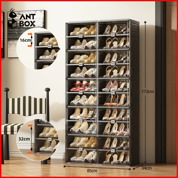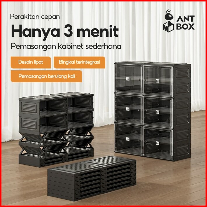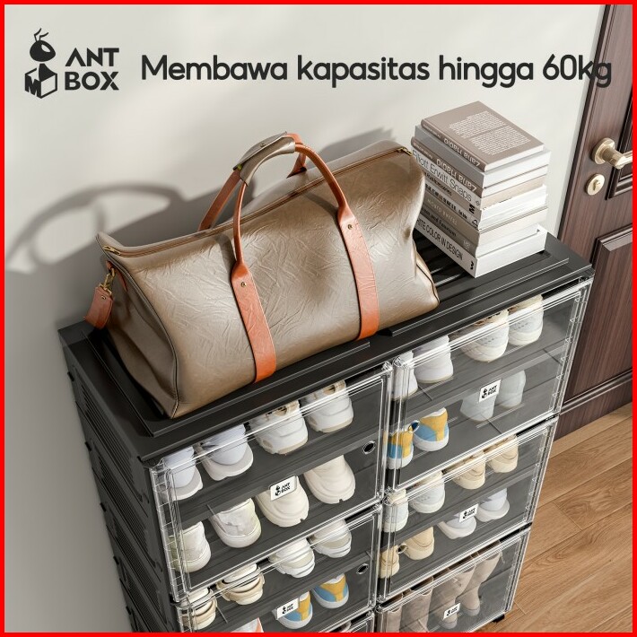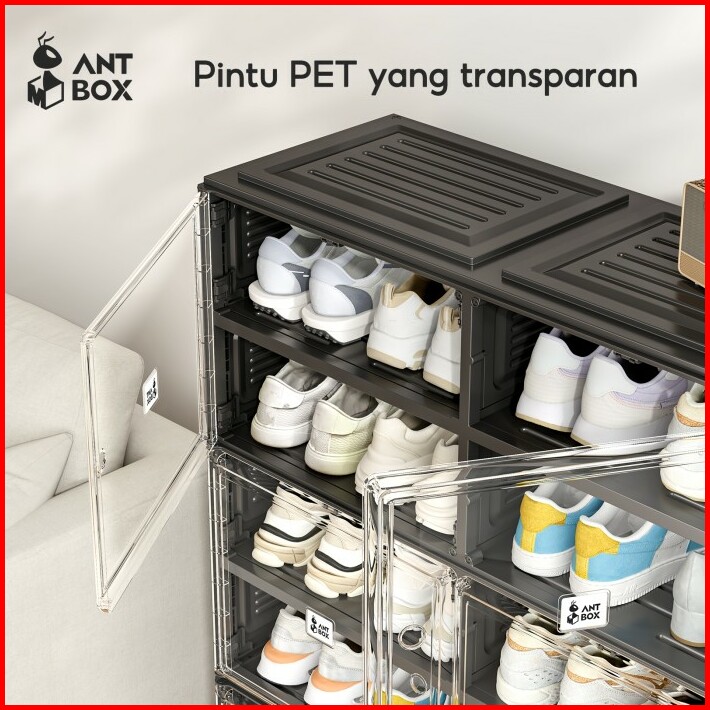 Antbox Rak Sepatu Lemari Sepatu Kabinet Susun Hitam 40 Pasang Aesthetic Minimalis Pintu Magnet