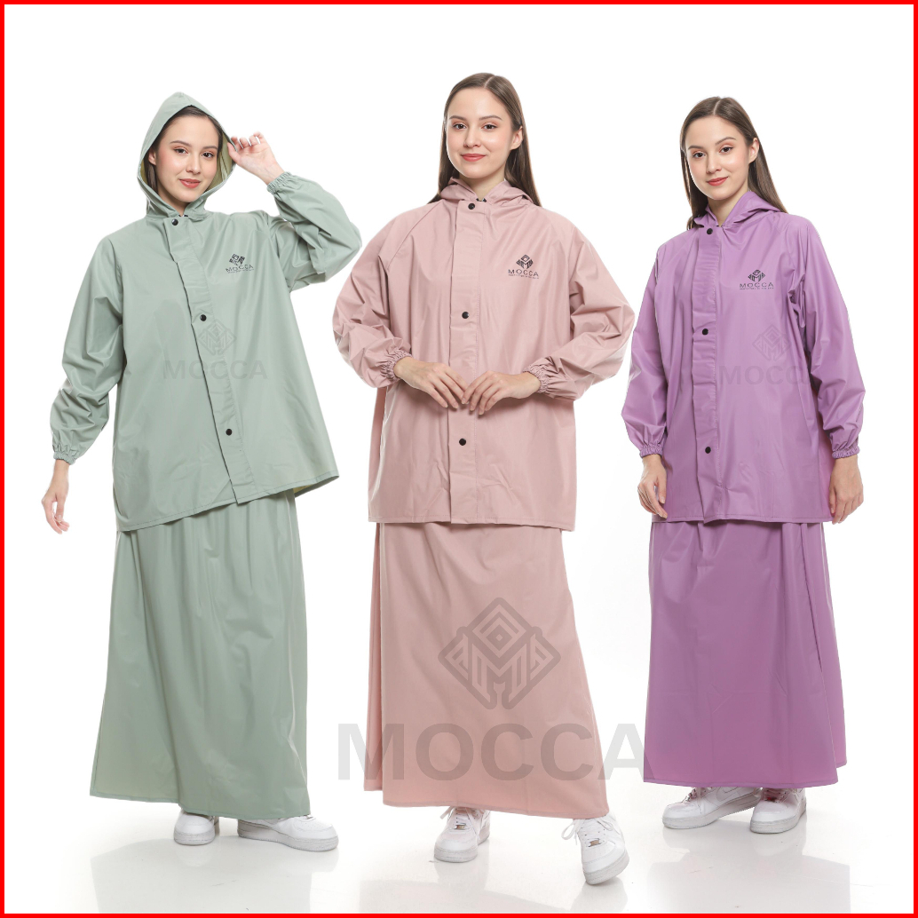 Mocca Jas Hujan Setelan Rok Wanita Bahan Pvc 0 25 Kuat Elastis Anti Rembes
