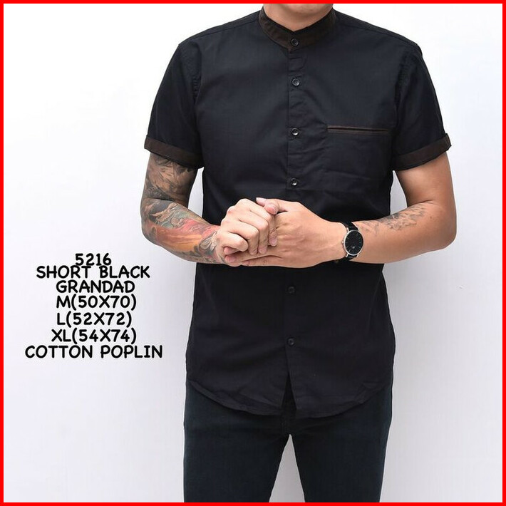 Kemeja Polos Pria Short Grandad Baju Cowok Polosan Kerah Shanghai