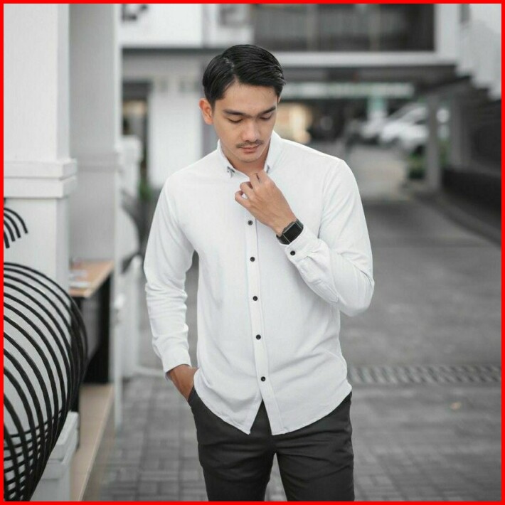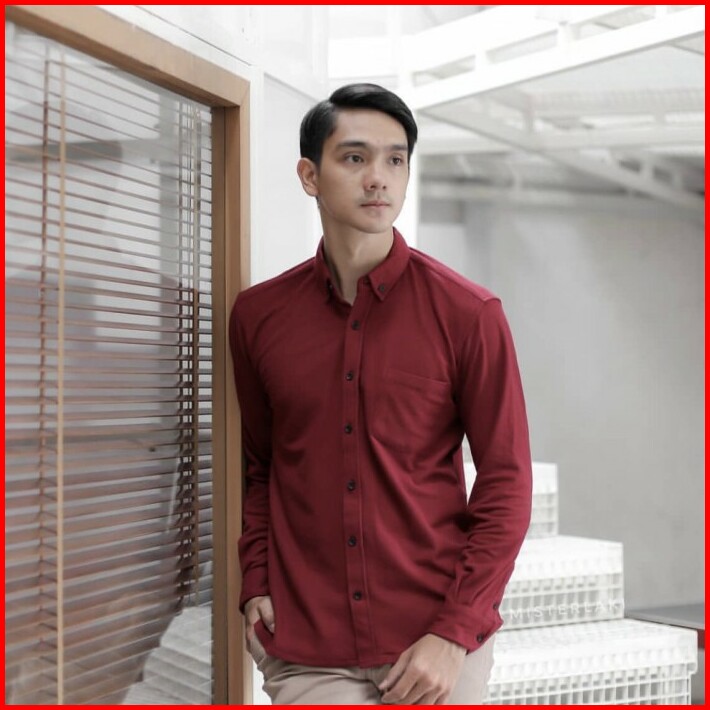 Kemeja Polos Pria Maroon Panjang Slimfit Kerja Kantor Baju Cowok