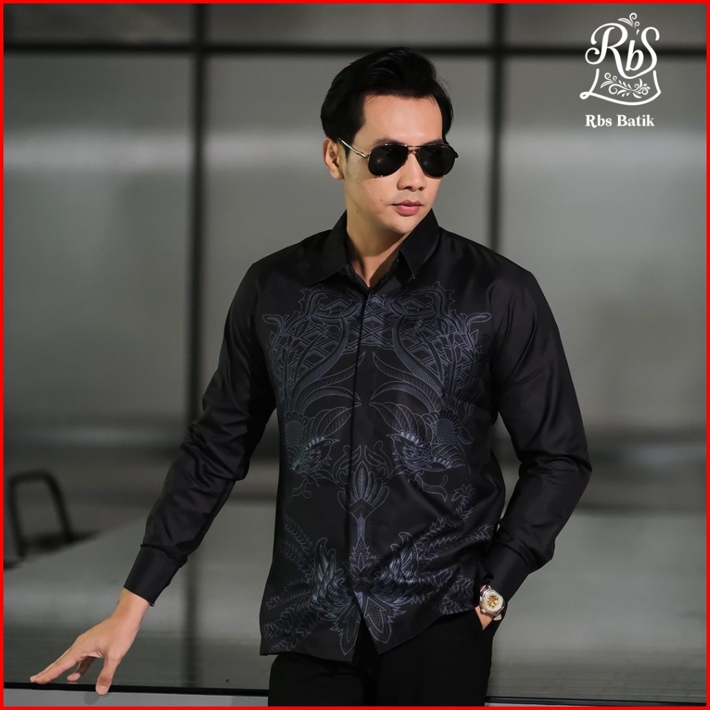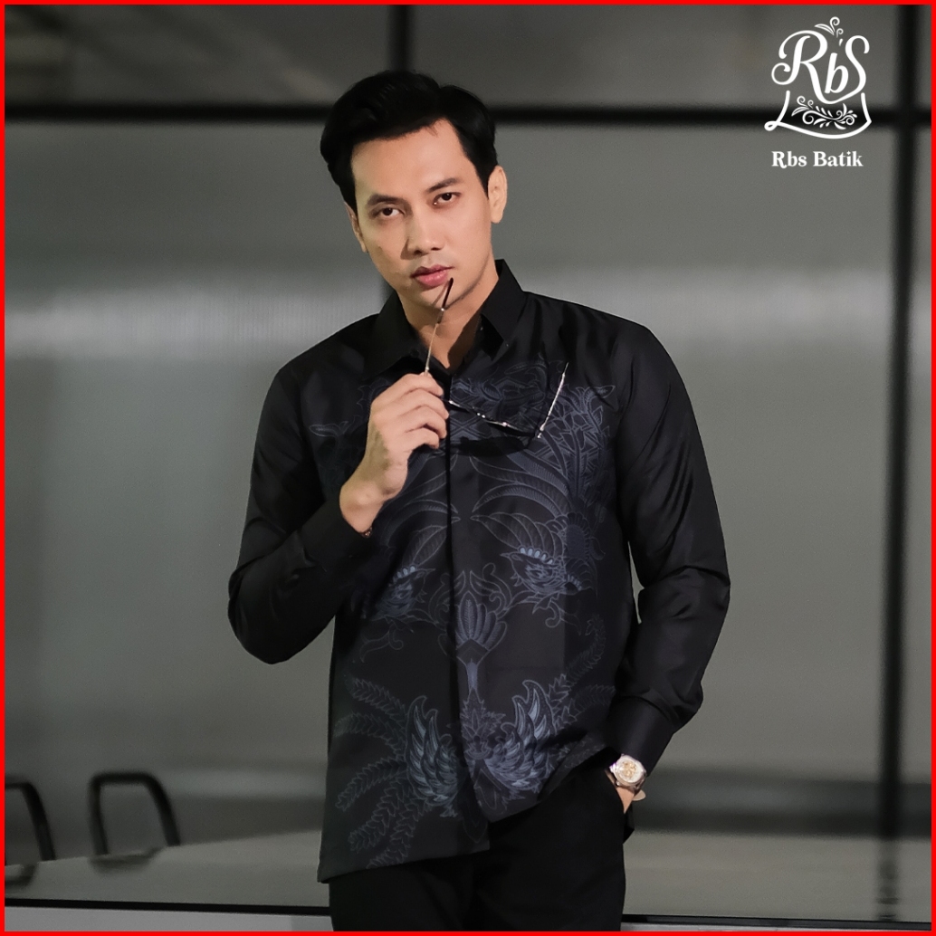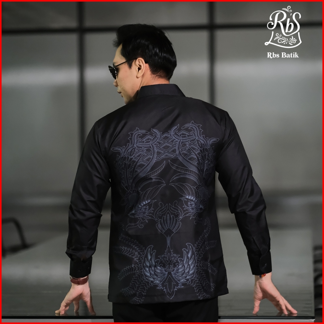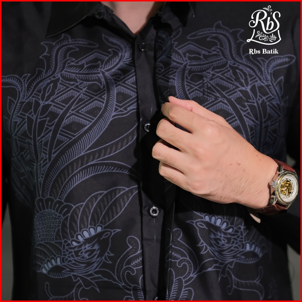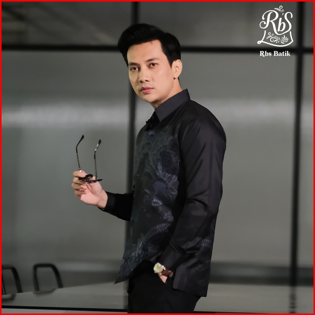 Rbs Batik - Kemeja Batik Pria Devanka Slimfit Lapis Furing Warna Hitam Biru Semi Abu Motif Gurdo