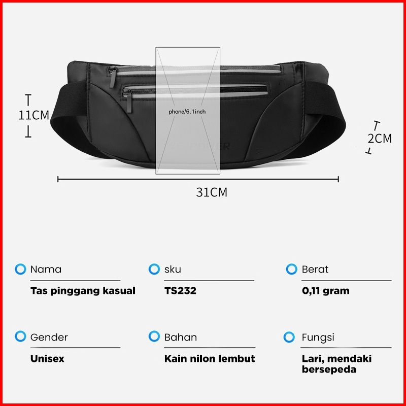 Freeknight Tas Slempang Pria Multifungsi Tas Pinggang Olahraga Pria Anti Air Slingbag Earphone Hole Waistbag Lari Pria T