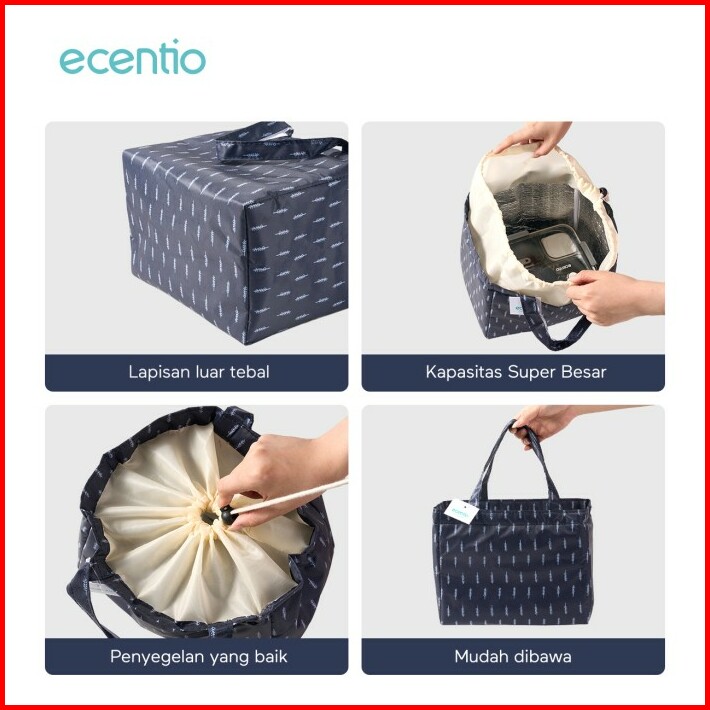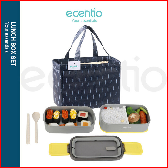 Ecentio 1600ml 2layers Kotak Makan Tas Bekal Lunch Box Set Bpa Free