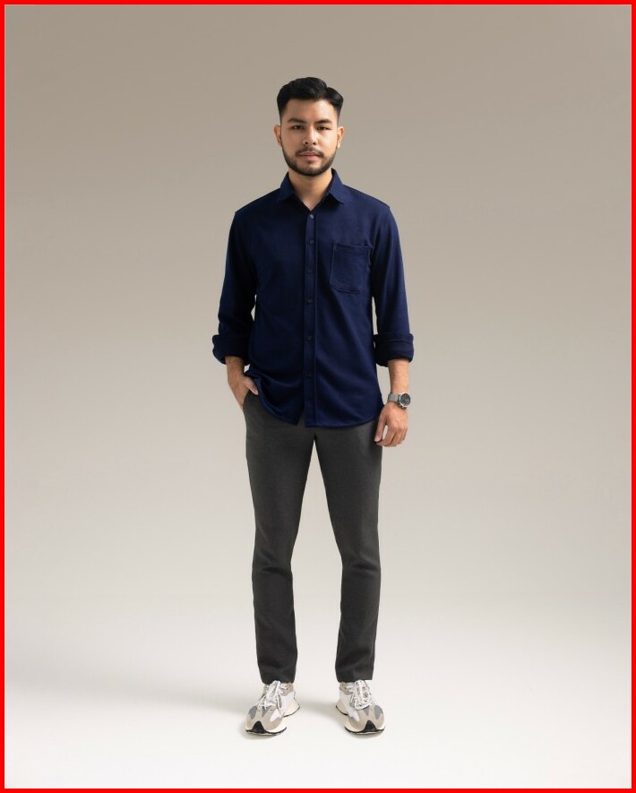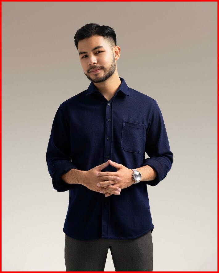 Broodis Kemeja Polos Softee Navy Lengan Panjang Slimfit