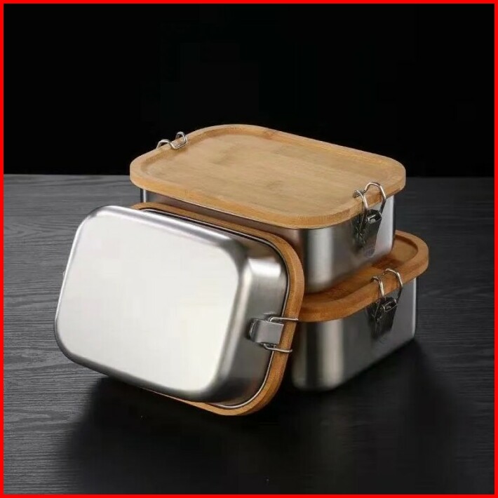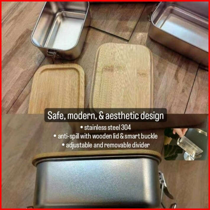 Lunch Box Stainless Steel 850 Ml Wooden Lid Bento Box Kotak Bekal Temp