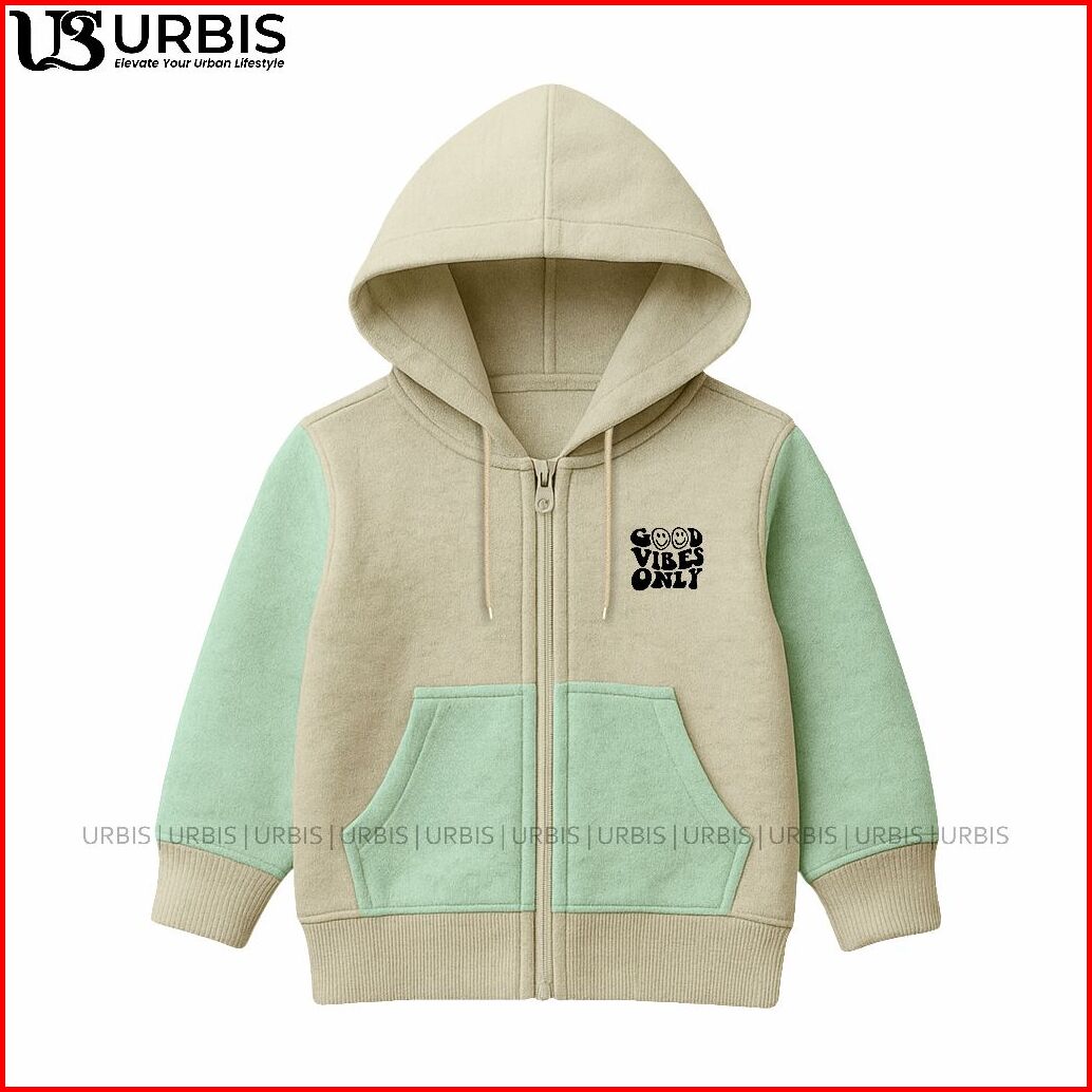 Urbis Jaket Zipper Anak Laki-laki Perempuan Kombinasi Usia 3-13 Tahun Good Vibes Only Fleece Tebal
