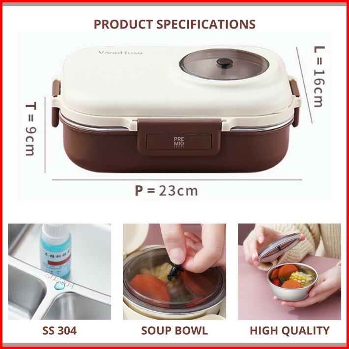 Premio Tempat Kotak Bekal Makan Bento Lunch Box Stainless Anti Tumpah