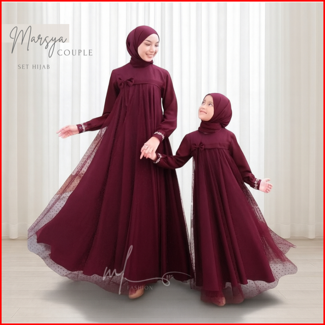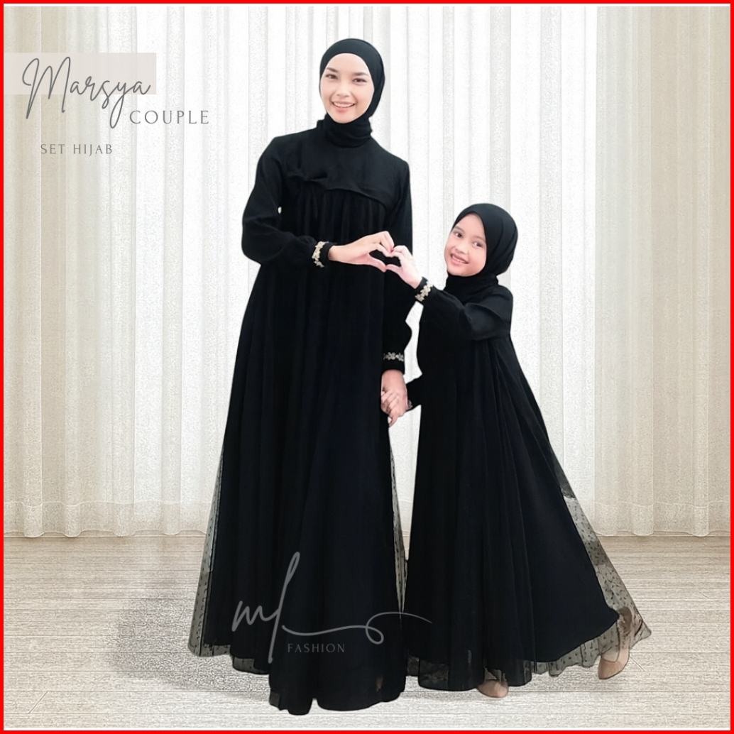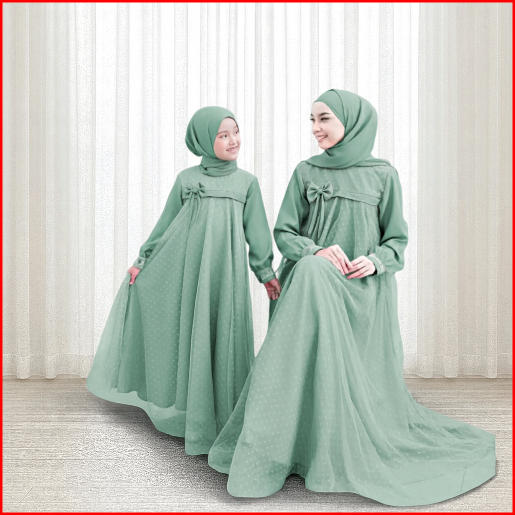 Baju Gamis Couple Mom And Kids Dress Ibu Dan Anak Couple Gaun Crinkle Airflow Mix Tile Dot