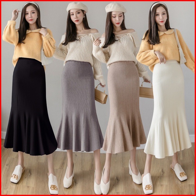 Miss O Rk1527 Rok Panjang Midi Plisket Korean Style Rok Duyung High Waist Rok Span Slim Full Karet