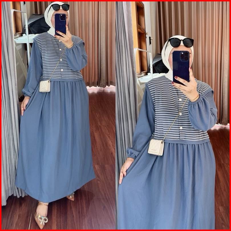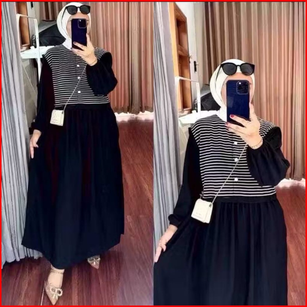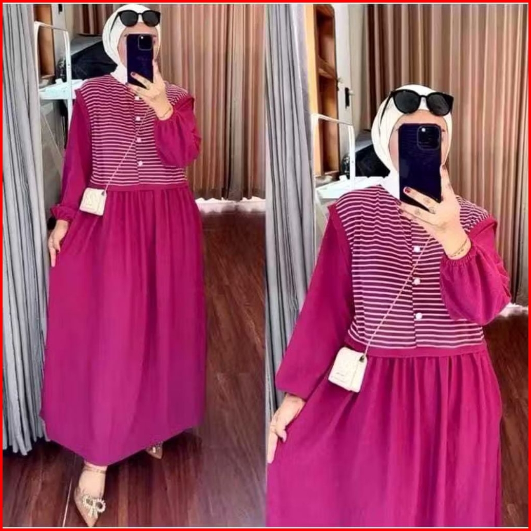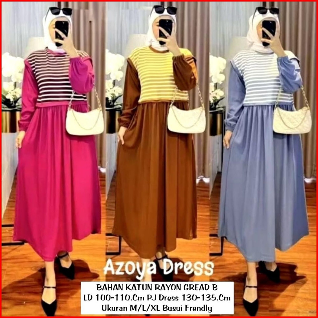 Azoya Midi Dress Gamis Salur Kombinasi Polos Gamis Katun Rayon Gamis Lebaran Model Terbaru Gamis Wanita Muslim Ukuran Se