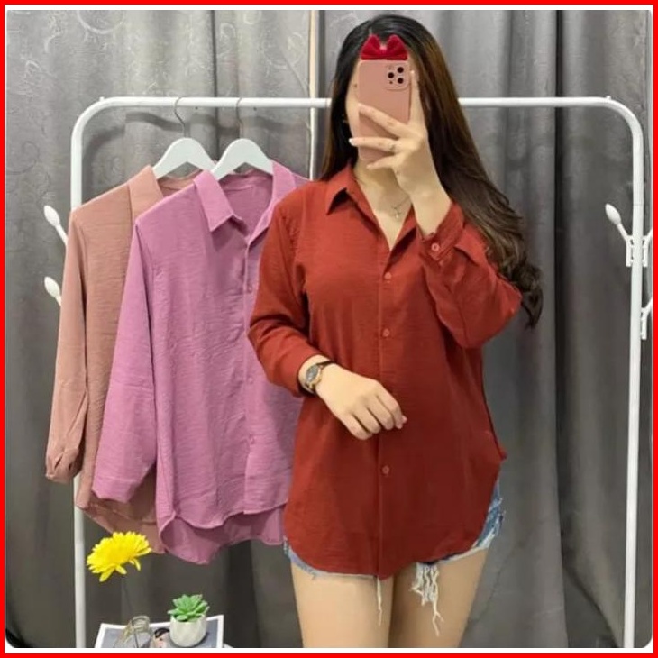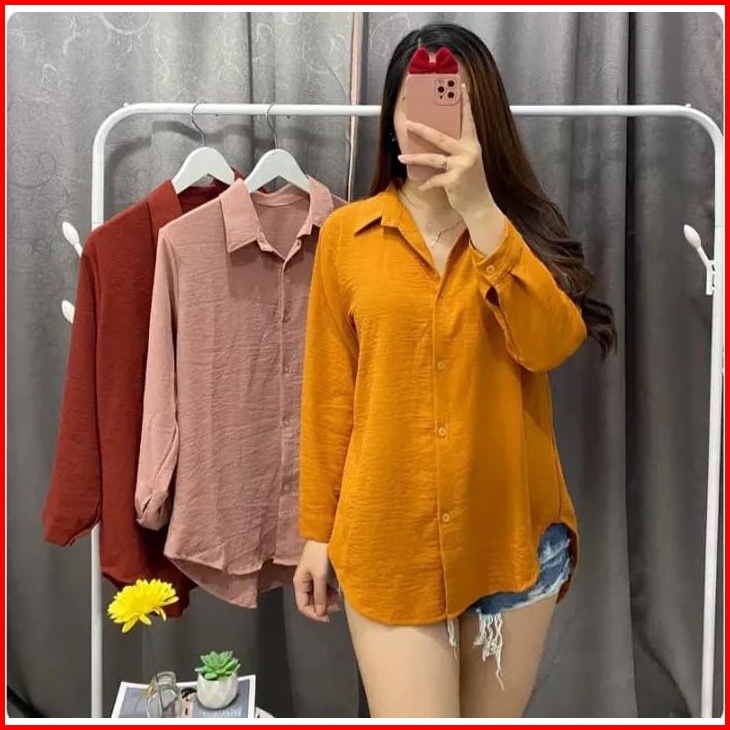 Kemeja Basic Ceinkle Botega Atasan Blouse Polos Wanita Kasual Kantor Kerja Ospek Formal