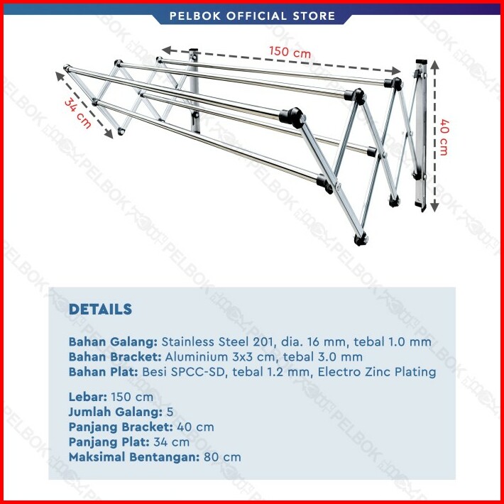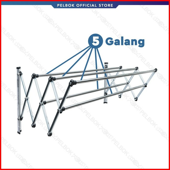 Pelbok Jemuran Baju Dinding Lipat Double 150 Cm Stainless Anti Karat