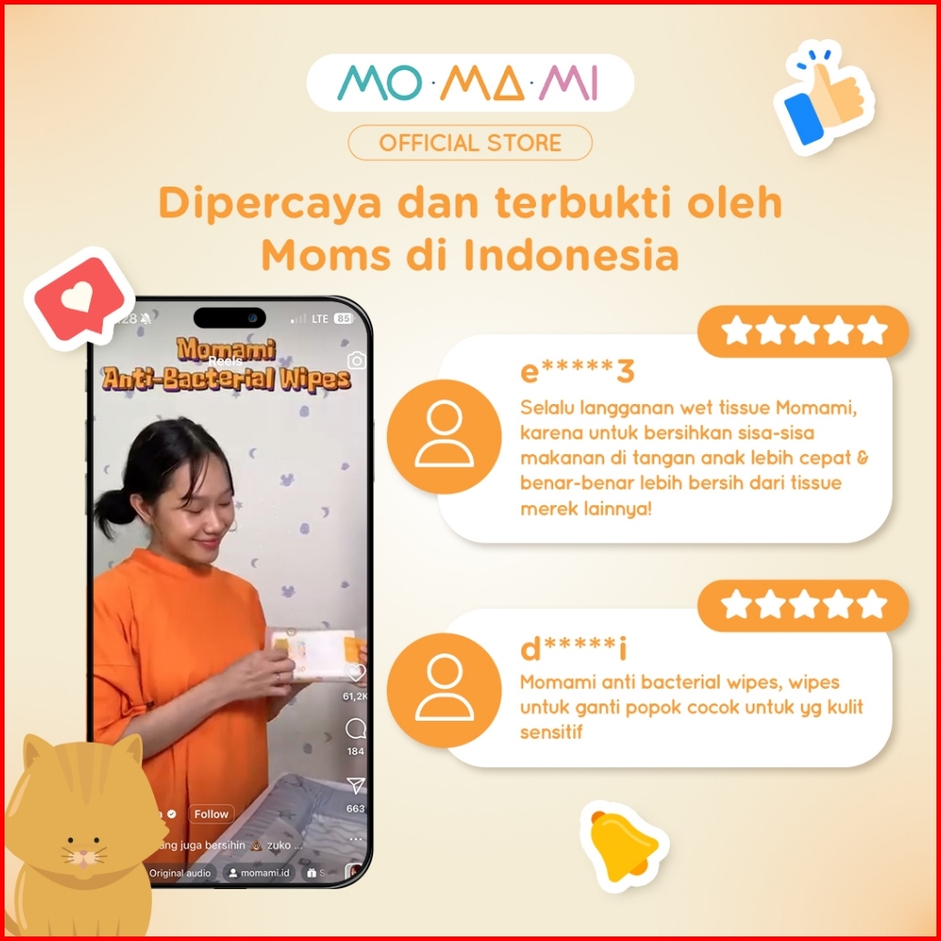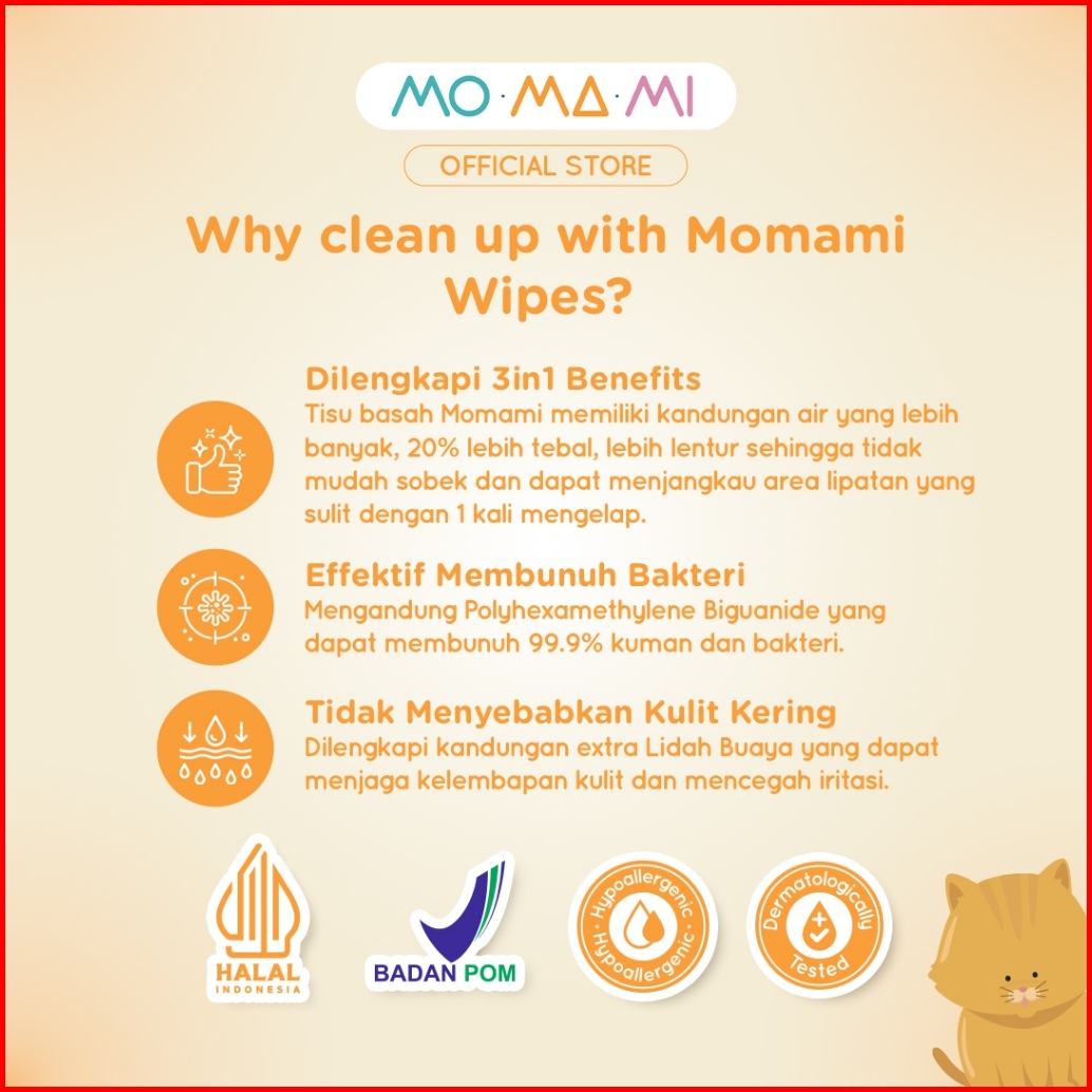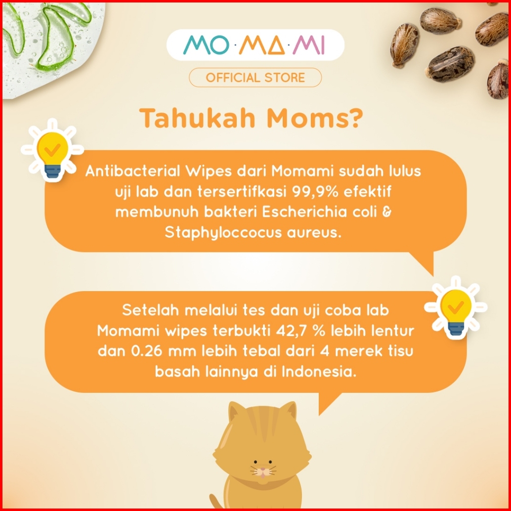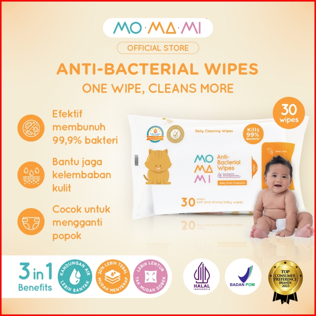 Momami Anti-bacterial Wipes Baby Wet Tissue - Tisu Basah Tebal Ganti Popok Anti-bakteri Bayi 30 Lembar