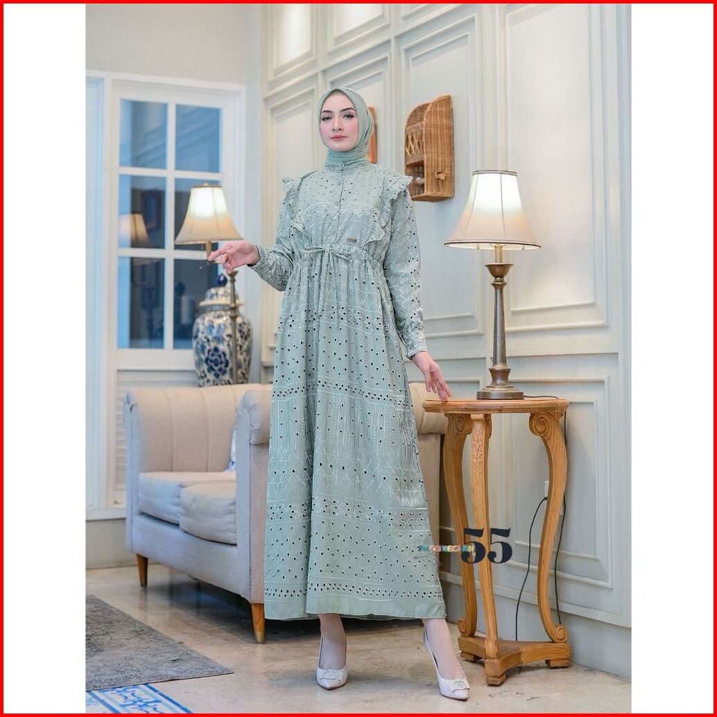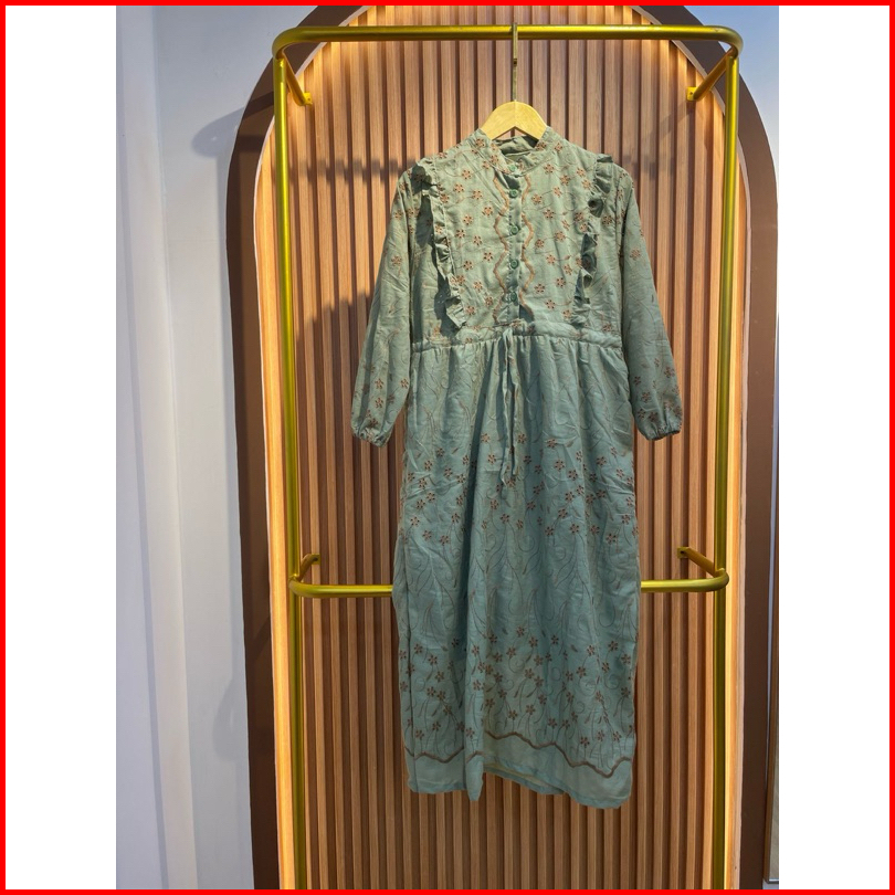 Raya Midi Dress Katun Bordir Furring Midi Katbol Puring Midi Dress Wanita Muslimah Midi Dress Polos Bordir Midi Lebaran