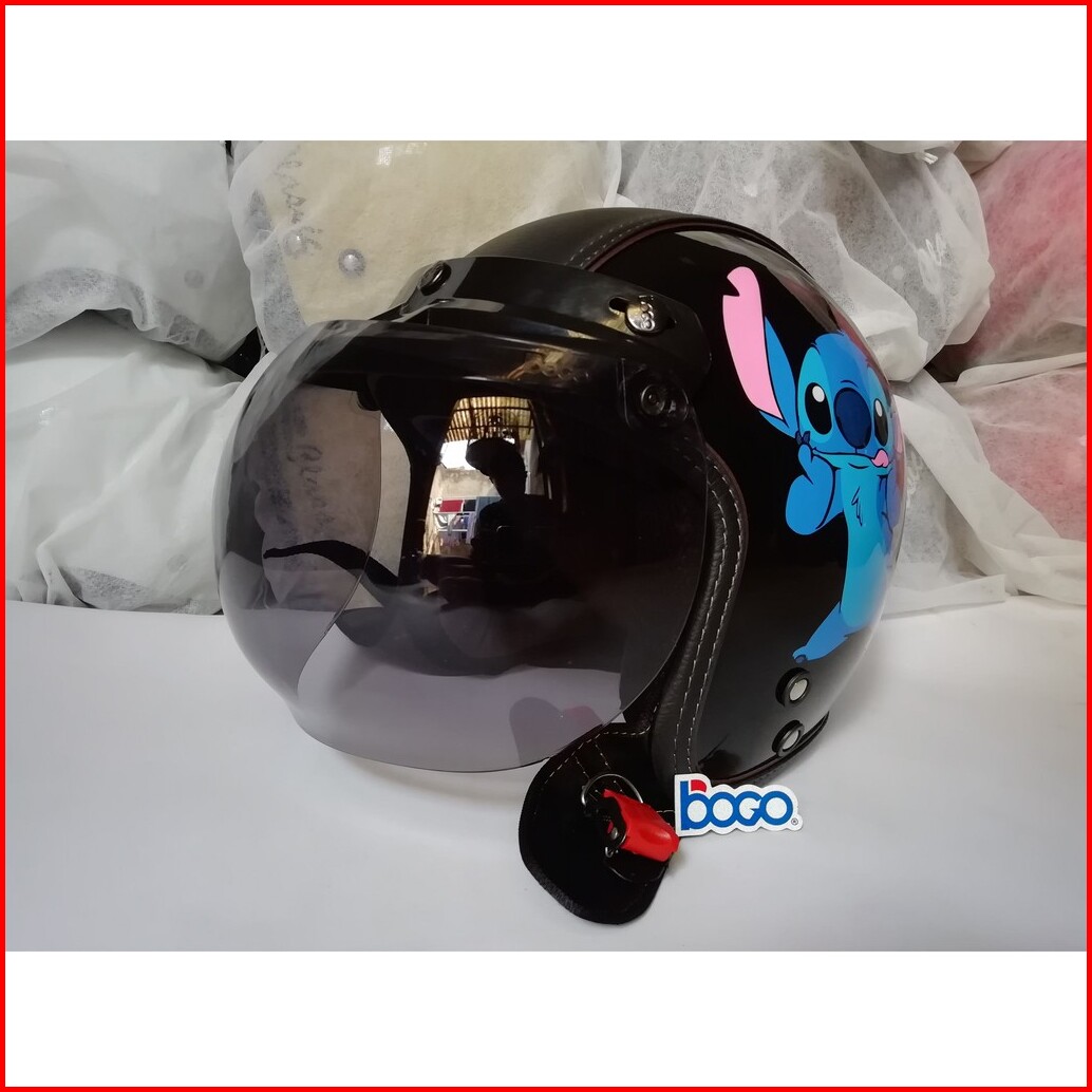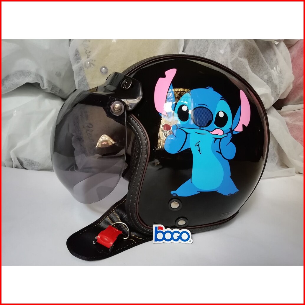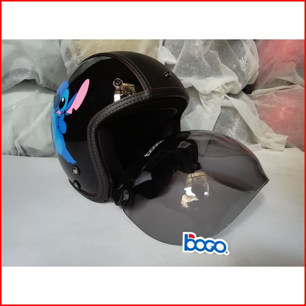 Helm Bogo Stich Hitam Semikulit Dewasa Kaca Bogo Original